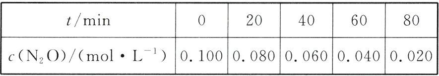 从表中数据可知,20 min时,N₂O浓度为0.080 mol·L⁻¹,而在60 min时,N₂O浓度变为原来的一半,因此N₂O消耗一半时的反应速率=$\frac{(0.080 - 0.040)\ mol\cdot L^{-1}}{40\ min}=0.0010\ mol\cdot L^{-1}\cdot min^{-1}$,A正确;由表中数据可知,每20 minN₂O浓度消耗0.020 mol·L⁻¹,因此当100 min时N₂O消耗完全,B正确;由表中数据可知,该反应匀速进行,与起始浓度无关,C错误;结合选项A的解析,N₂O起始浓度为0.080 mol·L⁻¹时,40分钟达到半衰期,代入关系式验证,可得40 = 500×0.080,D正确。