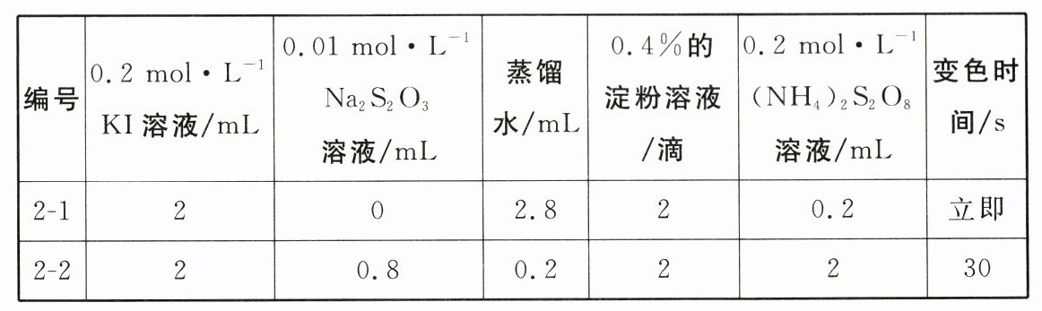 (3)实验2 - 1不能用于测定(NH₄)₂S₂O₈与KI反应的速率,原因除变色时间过短外还有______________________________。