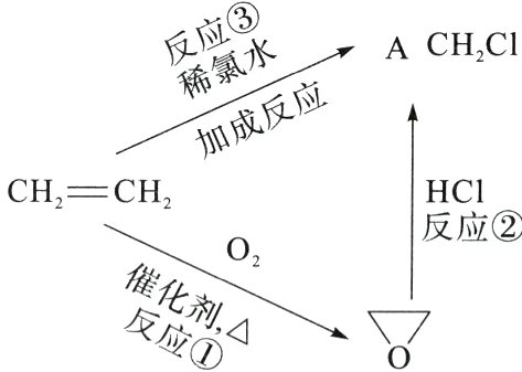 乙烯中含有碳碳双键,为平面结构,碳原子的杂化类型为sp²,故A正确;A分子中含有—OH,且与—OH相连的邻位碳上有氢原子,可以发生消去反应,含有—Cl,可以发生取代反应,不含不饱和键,不能发生加成反应,故B错误;反应③为乙烯和稀氯水的加成反应,由于氯水中含有氯气分子,氯气可能和乙烯发生加成反应生成副产物1,2 - 二氯乙烷,故C正确;反应②为