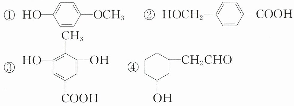 ①中羟基直接连在苯环上,属于酚,但酚羟基不能和NaHCO₃溶液反应,A项错误;②中羟基连在苯环侧链烃的饱和碳原子上,遇FeCl₃溶液不发生显色反应,B项错误;③属于酚,与溴水反应时,苯环上酚羟基的邻、对位氢原子可以被溴原子取代,根据③的结构简式可知,1mol③最多能与2mol Br₂发生反应,C项正确;④中羟基连在饱和碳原子上,并且与羟基相连的碳原子的邻位碳原子上有氢原子,所以④可以发生消去反应,D项错误。