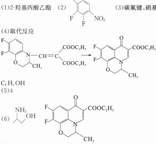 解析:采用逆推法,由E的结构简式,参照A的分子式,可确定A的结构简式为CH₃CH(OH)COOH;A与C₂H₅OH发生酯化反应,生成的B为CH₃CH(OH)COOC₂H₅;依据信息ⅰ,可得出C的结构简式为CH₃CH(OPHT)COOC₂H₅;依据信息ⅱ可确定D的结构简式为CH₃CH(OPHT)CH₂OH;由X的分子式为C₆H₂NO₂F₃,可确定X为
