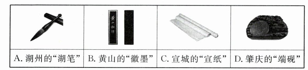 毛笔含有动物毛发,主要成分是蛋白质,属于天然有机高分子材料,A不符合题意;墨汁的主要成分为炭黑,不是硅酸盐材料,B不符合题意;宣纸的主要成分是纤维素,属于有机高分子材料,C不符合题意;砚台的主要成分为硅酸盐,D符合题意。