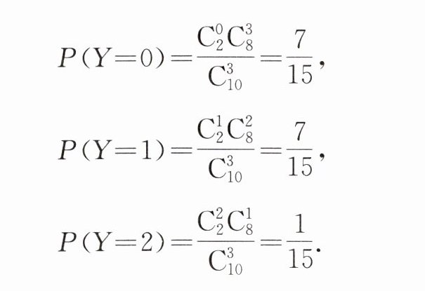 但1次抽取了3个,因此黑球数Y服从参数为10,3,2的超几何分布,