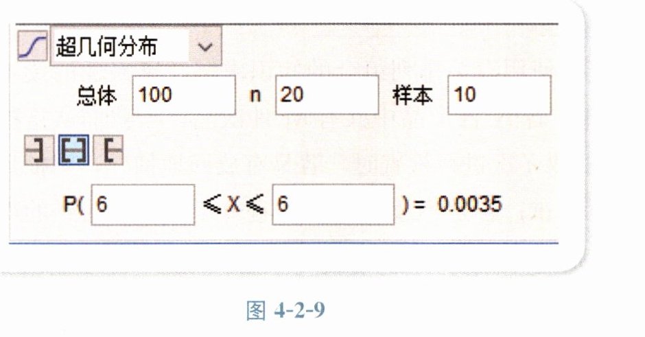 利用GeoGebra的概率与统计功能,选择超几何分布后,一样可以得到有关的概率值,如图4 - 2 - 9所示。