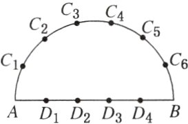 [典例3] 如图,在以AB为直径的半圆周上,有异于A,B的六个点C₁,C₂,…,C₆,线段AB上有异于A,B的四个点D₁,D₂,D₃,D₄.