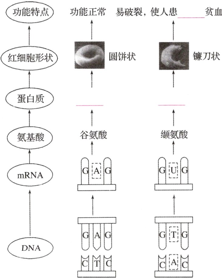 (2)病理诊断:镰状细胞贫血是由于基因的________________改变引起的一种遗传病,是基因通过控制____________的结构,__________控制生物性状的典例。