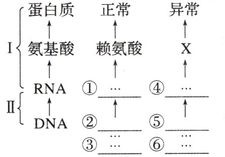 6.由于基因突变导致蛋白质的一个赖氨酸发生了改变。根据以下图表回答问题: