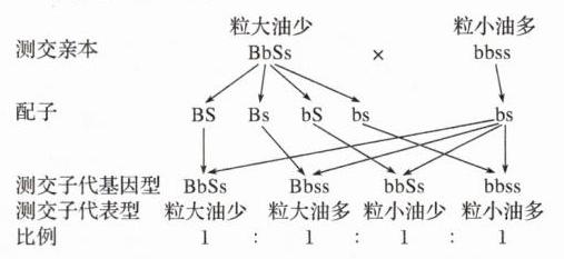 (4)让F₁(BbSs)与粒小油多的个体杂交,这种方法称为________,请据此写出该杂交实验的遗传图解(要求写出配子)。