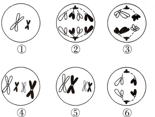 7. 如图①~⑥为细胞分裂模式图。其中能正确表示同种生物减数分裂过程顺序的是( )