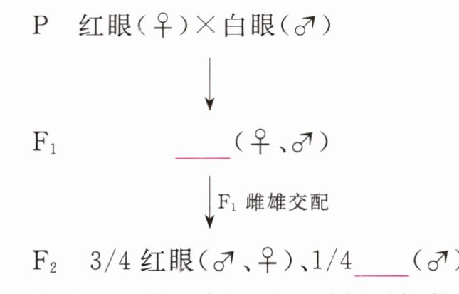 (3) F2中红眼:白眼 = ______________,符合________________定律,红眼和白眼受一对__________________控制。