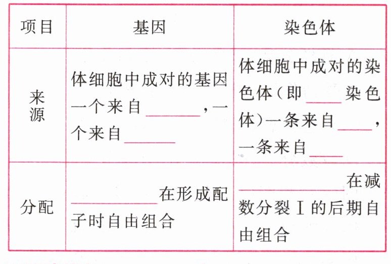 染色体的行为 平行 完整 独立 相对稳定 成对 成对的基因中的一个 成对 成对的染色体中的一条 父方 母方 同源 父方 母方 非等位基因 非同源染色体