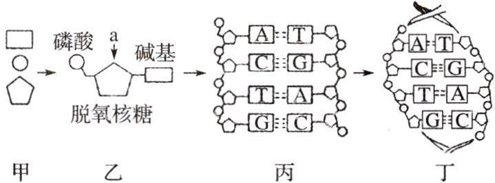 (5)丙到丁过程体现了DNA分子__________的特点,丁中排在外侧的物质是__________。