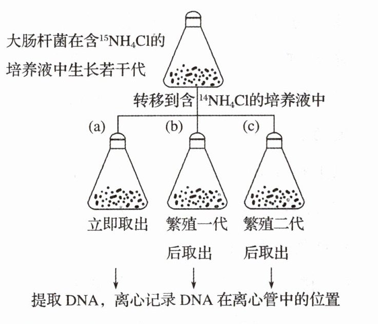③ 繁殖两代后取出,提取DNA→离心→1/2轻带、1/2中带。
