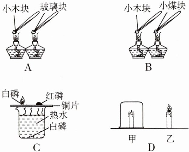 5. 在下列探究燃烧条件的实验中,只能得出“燃烧需要温度达到可燃物的着火点”的是( )