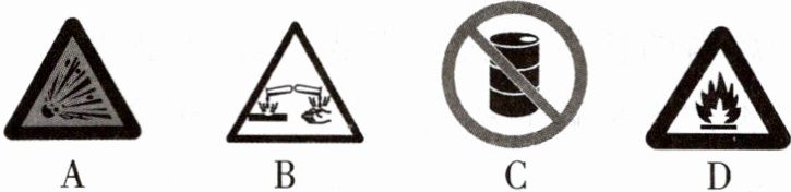 (3)雁鱼灯的大雁脖颈可将燃烧产生的废气引入水中以减少对室内环境的污染,天然气作为一种无污染的燃料逐渐被推广开来,请写出其燃烧的化学方程式:$CH_{4} + 2O_{2}\stackrel{点燃}{=\!=\!=}CO_{2} + 2H_{2}O$。天然气属于易燃物质,我们在运输和使用易燃易爆物时绝不允许违章操作。认识标志,远离危险。下列标志与燃烧和爆炸有关的是(填字母)。