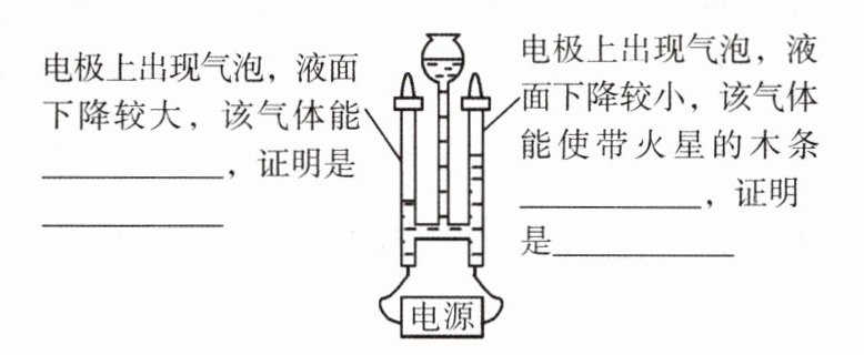 1. 被点燃 氢气 复燃 氧气 2:1 2. 水$\xrightarrow{通电}$氢气+氧气 3. 氧气 氢气 4. 氢、氧 氢、氧 二、一种物质 两种或两种以上其他物质