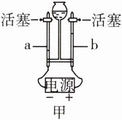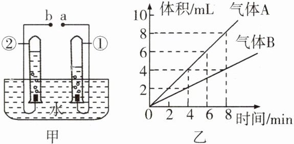 9. 如图所示,图甲是电解水的简易装置,图乙为电解水生成气体与时间的关系图。