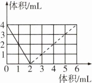 A 解析:每增加1mL的氧气,氢气则对应消耗了2mL,当氧气体积小于2mL时,氢气有剩余;当氧气体积为2mL时,两者恰好完全反应,所以反应中消耗氢气4mL,A错误。氧气体积大于2mL时,氢气反应完,氧气有剩余,虚线部分表示剩余的气体是氧气,B正确。当氧气体积为2mL时,两者恰好完全反应,所以实线与虚线的交点表示两种气体恰好完全反应,C正确。每增加1mL的氧气,氢气则对应消耗了2mL,当氧气体积小于2mL时,氢气有剩余,所以实线部分表示剩余的氢气,D正确。