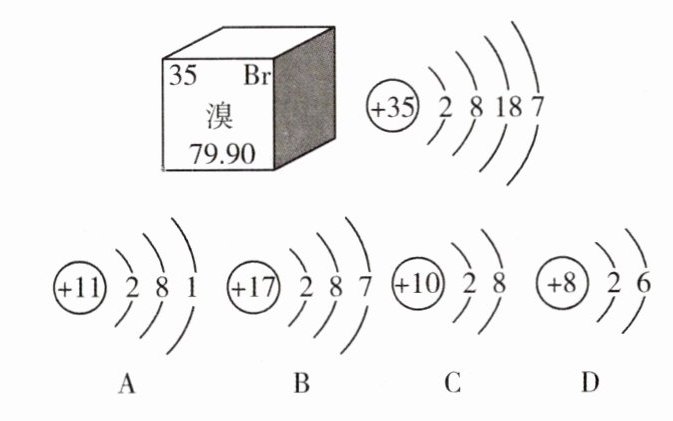 ③A、B、C、D四种元素中,与溴化学性质相似的是__________ (填字母)。
