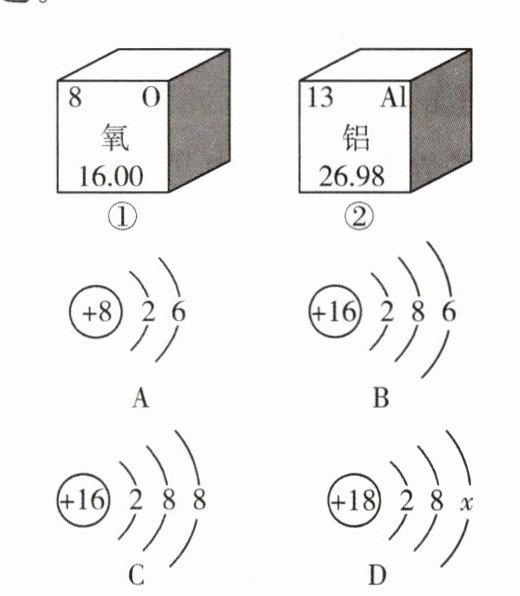 (2)C 粒子是阴离子;若 D 是原子,则 x=8。