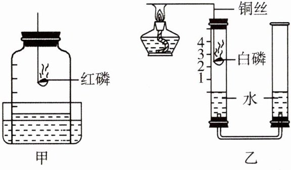 D. 图乙实验结束左侧玻璃管内液面约上升到刻度低于 1 处,原因可能是白磷不足