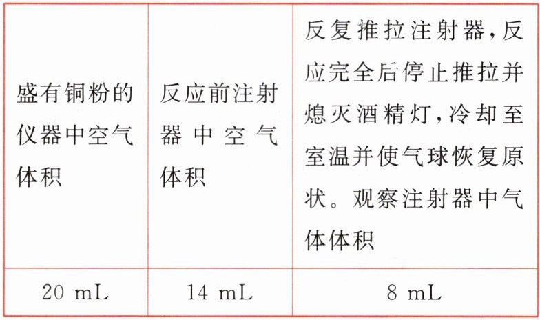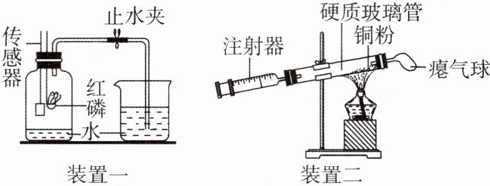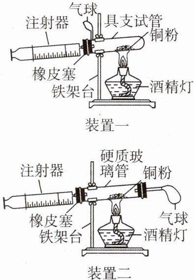 14. (科学思维)兴趣小组设计了测定空气中氧气含量的两套实验装置,请结合图示回答问题。(装置气密性良好,注射器的摩擦力忽略不计;加热条件下铜与氧气反应生成黑色固体氧化铜)