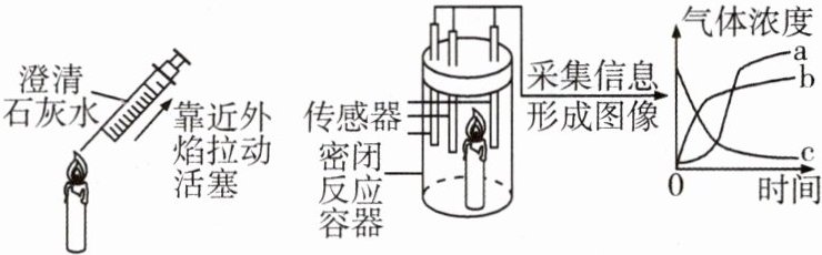 10. (创新题)某化学兴趣小组通过微型实验探究蜡烛燃烧的产物,用数字化实验监测密闭容器内蜡烛燃烧时氧气、二氧化碳和水蒸气含量的变化,形成了如图所示的三条曲线。下列说法不正确的是( )