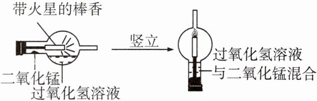 ②橡皮塞上固定好带火星的棒香后,用橡皮塞塞紧干燥管并将其竖立,观察现象。
