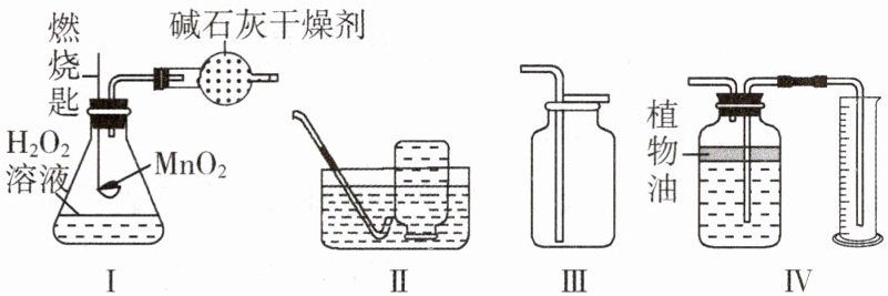6. (实验情境)(2023·济宁兖州区校级月考)某化学兴趣小组用如图所示的装置来制取干燥的氧气,并测定产生的氧气体积,装置气密性良好,图Ⅰ中的锥形瓶内盛有过氧化氢溶液,燃烧匙内装有二氧化锰,燃烧匙可以上下移动,干燥管内装有干燥剂,下列相关说法正确的是( )