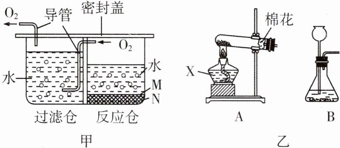 (1)检验“过滤仓”中导出的气体是氧气的方法是____________________________,兴趣小组同学在实验室模拟用过碳酸钠、二氧化锰、水制取氧气,可选用的发生装置是________(从图乙中选填“A”或“B”),为获得平稳气流,需对装置进行改进,改进的方法是____________________________。
