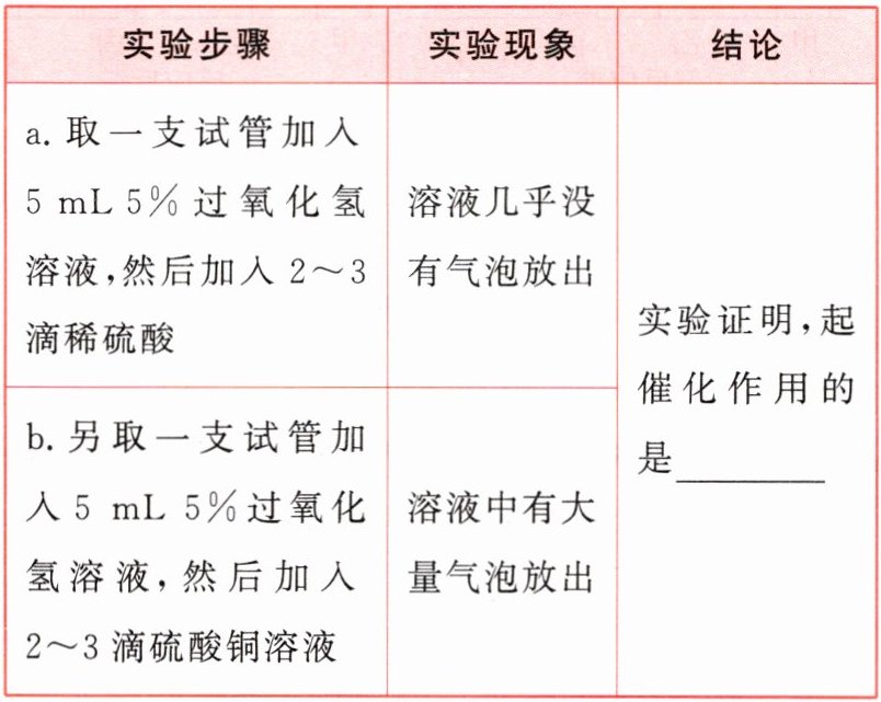 [探究]CuSO₄溶液也能显著加快过氧化氢的分解,CuSO₄溶液主要含有三种粒子(H₂O、Cu²⁺、SO₄²⁻),为了进一步探究CuSO₄溶液中哪种粒子能起催化作用,小组同学作了以下分析和设计。