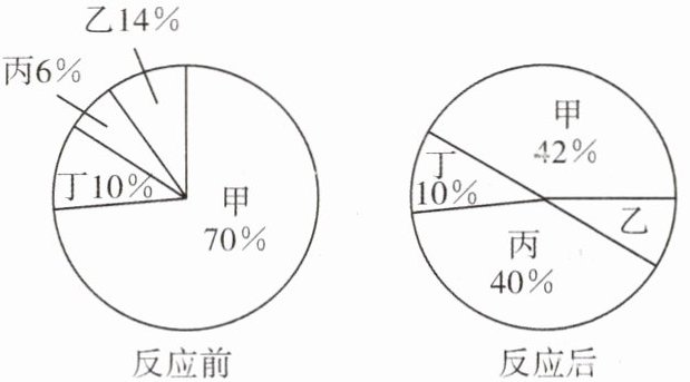 C 解析:由题图可知,反应后甲的质量减小,则甲是反应物,A错误;反应后乙物质的质量分数是1 - 42% - 40% - 10% = 8%,B错误;该化学反应中甲、乙两物质的质量比是(70% - 42%) : (14% - 8%) = 14 : 3,C正确;化学反应前后,丁的质量不变,丁可能是催化剂,也可能是不参与反应的杂质,D错误。