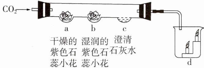 [设计实验]稀盐酸(或稀硫酸) 向第二朵纸花喷蒸馏水 验证二氧化碳能否使紫色石蕊纸花变色