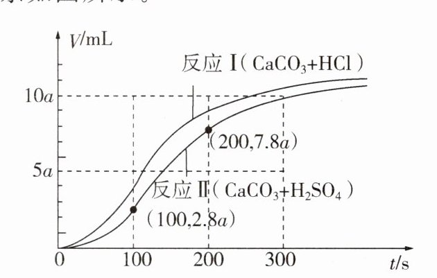 ②由图可知反应Ⅱ中0~100 s内产生的$CO_{2}$体积比100~200 s内产生的少————mL。