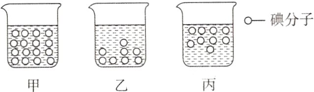 (2)甲、乙、丙三个同学分别画出下面的示意图,表示溶液中碘分子的分布(汽油分子没有画出)。