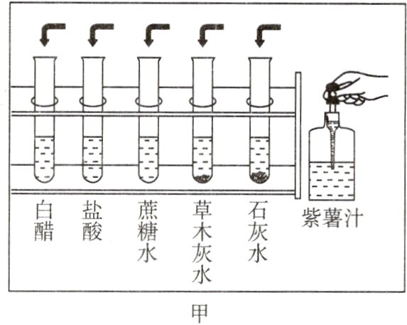 (1)把自制的紫薯汁按图甲所示分别滴加到试管中,观察到的现象如表所示。