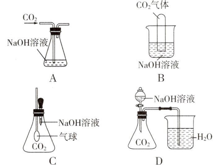 1. 下列验证“CO₂ 与 NaOH 溶液反应”的装置(装置气密性均良好)中,不能观察到明显现象的是( )