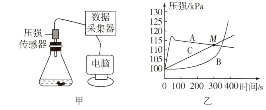 9.(实验情境)小明同学取镁、铝、锌三种金属,分别放入盛有质量和浓度都相等的稀盐酸的锥形瓶中,实验装置如图甲所示,采集数据,得到如图乙所示的气压变化曲线。下列说法错误的是( )