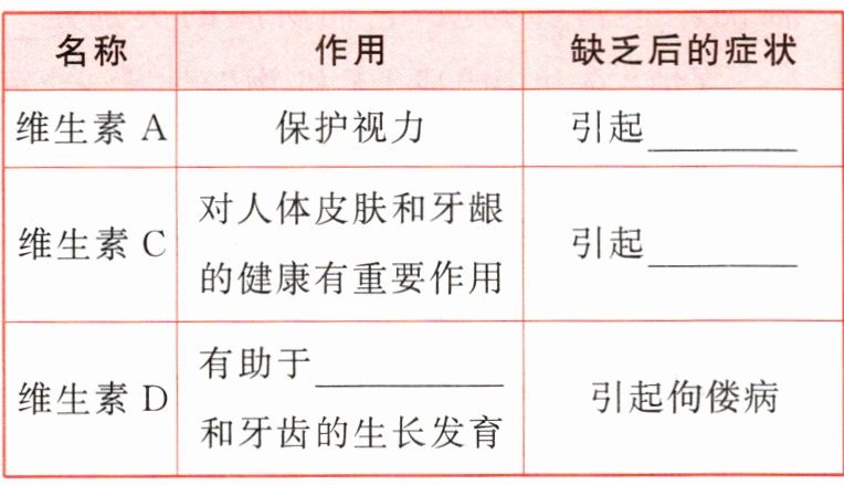 5. 维生素:主要作用是调节体内进行的各种化学反应,以保持健康。