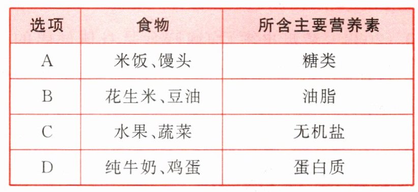C 解析:水果、蔬菜中所含的主要营养素是维生素,C错误。