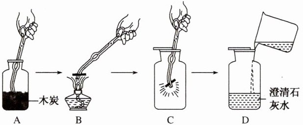 3. 如图所示是木炭在氧气中燃烧的实验操作,请回答下列问题: