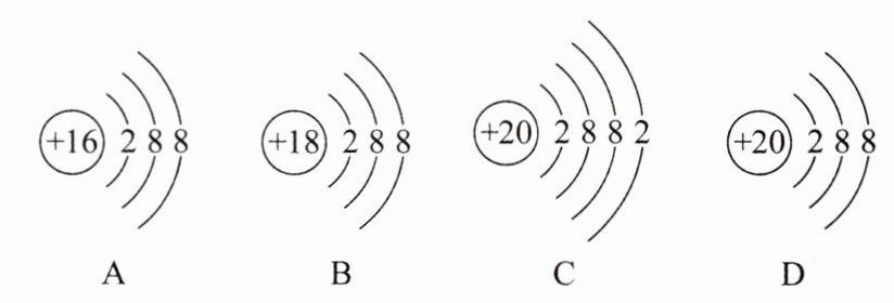 9. 钙通道阻滞剂是一种降压药,其中的钙离子属于阳离子,其结构示意图是 ( )