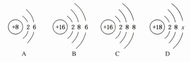 $(2)C$粒子属于____(填“原子”“阴离子”或“阳离子”),若$D$为原子,则$x$ =____。