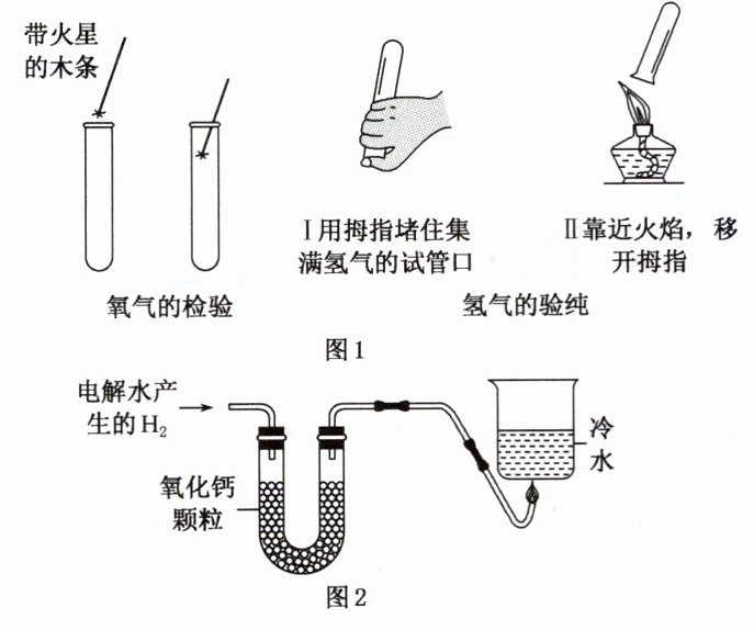 11. 如图是对水的电解实验中得到气体检验的操作$(U$型管中氧化钙能和水反应,氧化钙的作用是除去氢气中的水蒸气)。