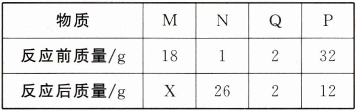 6. 在一个密闭容器中放入$M$、$N$、$P$、$Q$四种物质,在一定条件下发生化学反应,一段时间后,测得有关数据如表所示,则关于此反应认识不正确的是 ( )