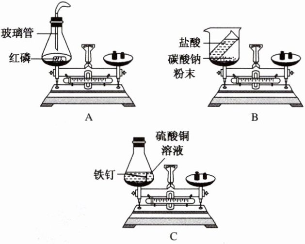 (2)在验证质量守恒定律时,下列$A$、$B$、$C$三个实验设计中能达到实验目的的是 $________($填字母)。