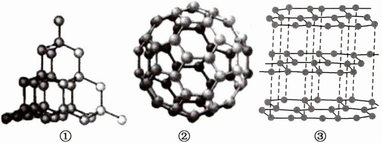 (2)下列结构图中,依次表示石墨、金刚石、$C₆₀$的是 $________($填序号)。