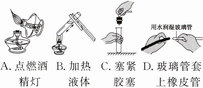 5. 把玻璃管插入带孔橡胶塞,或者连接玻璃管和胶皮管,都要将插入的玻璃管一端________,然后稍稍用力插入即可;在容器口塞橡胶塞时,切不可把容器放在桌上再使劲塞进塞子,以免________;用试管刷刷洗试管时,须________________________试管刷,但用力不能过猛,以防损坏试管;玻璃仪器洗净的标志:________________________。