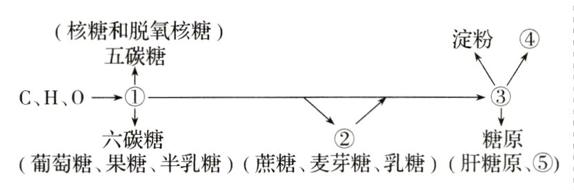 A. 图中①②③④⑤所代表的糖类都能提供能量
