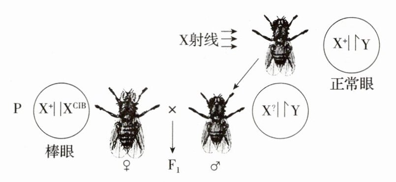 5. (突变致死)CIB品系果蝇具有一条正常的X染色体(X+)和一条含CIB区段的X染色体(XCIB),其中C表示染色体上的倒位区,可抑制X染色体间非姐妹染色单体互换;I为雄性果蝇胚胎致死的隐性基因;B为显性棒眼基因。已知CIB品系可用于隐性突变和致死突变的检测,某研究人员开展了相关的实验来探究经过X射线照射的正常眼雄果蝇其X染色体是否发生隐性突变,下列说法错误的是( )